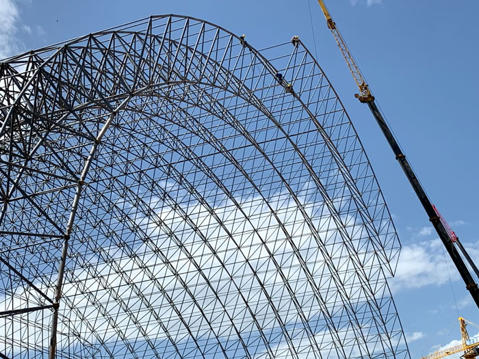 (2)网架加工前应对现场尺寸进行复测,确认无误后方可进行加工、安装;网架制作、运输、安装应遵守《空间网格结构技术规程》JGJ7-2010、《钢网架靖江螺栓球节点》JG/T 10-2009、《钢网架靖江螺栓球节点用高强度螺栓》 GB/T 16939-2016、《靖江钢结构靖江工程靖江施工规范》 GB50755-2012、《靖江钢结构靖江工程靖江施工质量验收标准》 GB50205-2020。